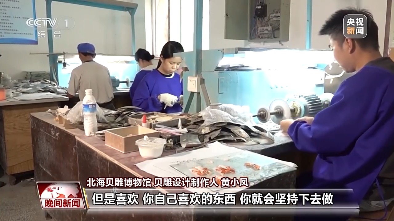 北海貝雕博物館貝雕設(shè)計(jì)制作人 黃小鳳:剛開始的時(shí)候?qū)W的話也比較容易受傷,但是喜歡,你自己喜歡的東西,你就會堅(jiān)持下去做。