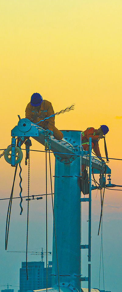 山東省聊城市電力部門工作人員正對線路進行檢修。 謝 軍攝(人民視覺)