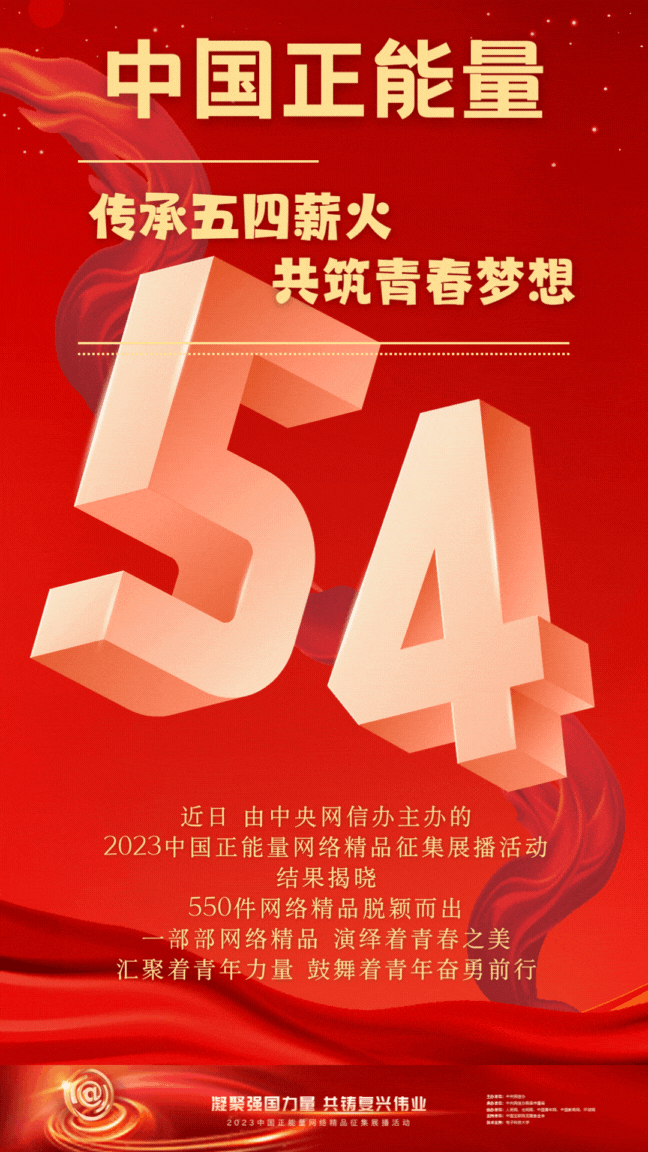 近日,由中央網信辦主辦的2023中國正能量網絡精品征集展播活動結果揭曉,550件網絡精品脫穎而出。一部部網絡精品,演繹著青春之美,匯聚著青年力量,鼓舞著青年奮勇前行。