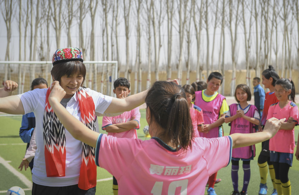 足球賽奪冠,不是第一次了,學校已經連續多年蟬聯阿克陶縣校園聯賽女子組冠軍,連縣城賣馕的大叔都知道,且克村小學的女足很厲害。但這一次有點不一樣,是因為兩件事情中的另一件,是中國女足前主教練水慶霞要來看她們的比賽,帶她們訓練。