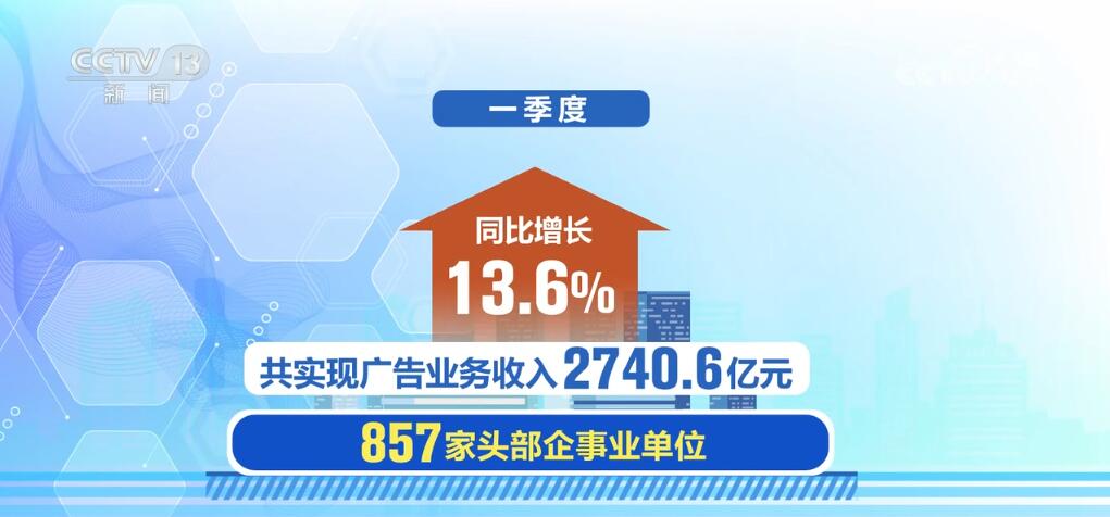 市場監管總局公布數據顯示,一季度,857家頭部企事業單位共實現廣告業務收入2740.6億元,同比增長13.6%。