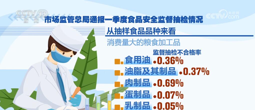 記者5月7日從市場監管總局獲悉,2024年第一季度,全國市場監管部門完成食品安全監督抽檢近77萬批次,依據有關食品安全國家標準等進行檢驗,監督抽檢不合格率為2.36%,較2023年同期上升0.18個百分點。