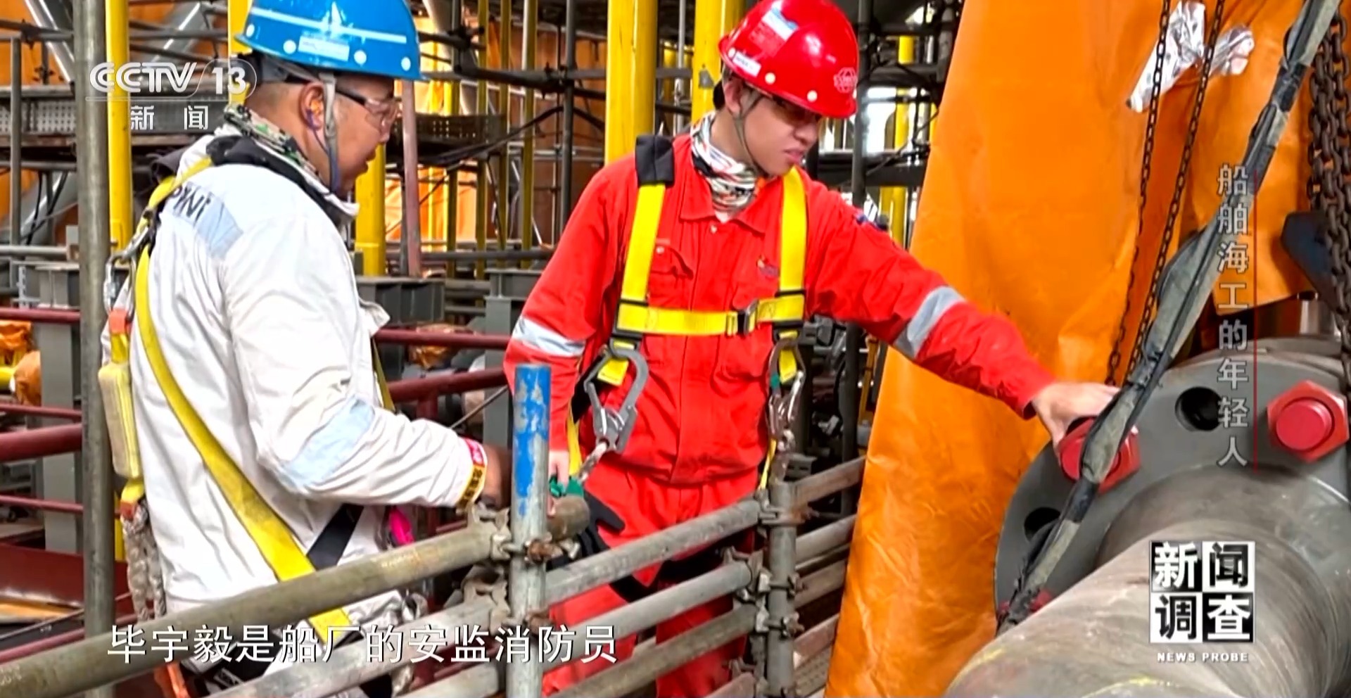 啟東中遠海運海洋工程有限公司安監消防員 畢宇毅:那個船非常漂亮,也是我進入這個行業第一個學習的項目,在一個300多米的船上,每天能走兩萬步。等到項目交付的那一刻,等這個船嶄新擺在碼頭的時候,大家都感覺非常自豪。那一刻你也不知道看的是什么,可能看的就是過去兩年半的青春奉獻在了這個大國重器上面。