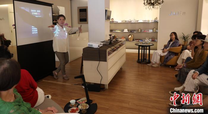 5月10日,臺灣知名藝術史學者朱惠良在臺北一個文化沙龍講述昆曲藝術。圖為朱惠良現場清唱《牡丹亭》名段。中新社記者 劉舒凌 攝