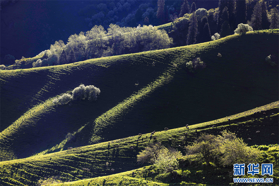 5月的新疆那拉提草原綠草如茵,繁花盛放,生機勃勃。清晨的光線照射在那拉提起伏的山體脊梁上,匯聚成神奇的光與影的世界,陽光勾畫出山體草甸輪廓,線條柔美,層次分明。山梁與山脊、草木披上金色長袍,為綿延起伏的草甸增戴上神秘面紗,一幅美麗的畫卷展現在眼前,令人陶醉。