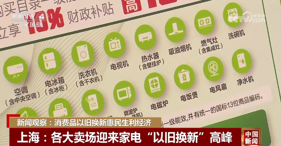 江蘇各地細化以舊換新落地政策時,把售后服務專業化、便利化、標準化作為重要手段。在各大家電賣場,消費者可以享受折扣優惠、舊家電拆裝、上門安裝等“一條龍”服務。按照上海市新一輪綠色智能家電消費補貼政策,購買16大類一級能效家電產品,消費者可以按照成交價格的10%享受一次性立減補貼。截至本月13日,各類補貼產品銷售額已達6億元,交易量7.7萬單。