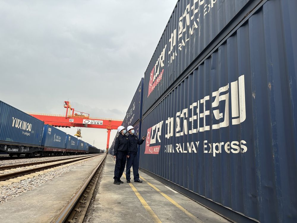 廣州海關所屬廣州車站海關關員對中歐班列出口貨物進行監管。(受訪者供圖)