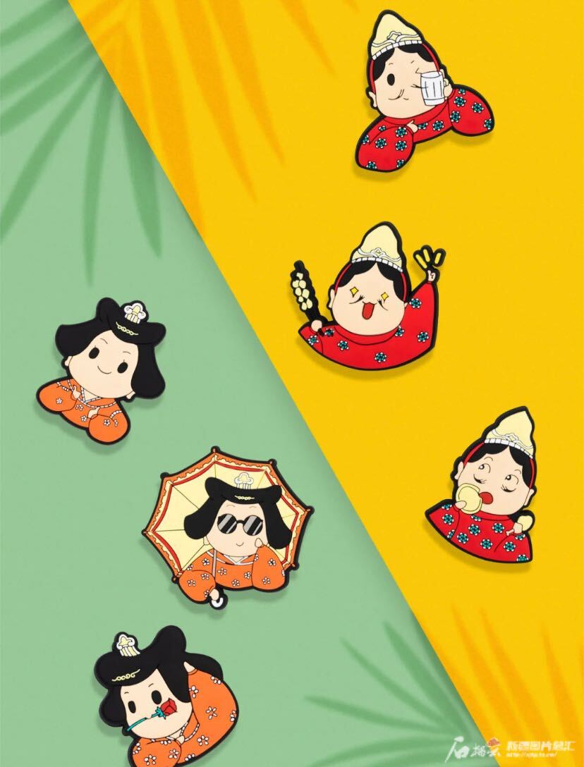 取材于第20窟壁畫中高昌供養人形象的“小智”“小慧”冰箱貼。圖片由新疆博物館文創部提供