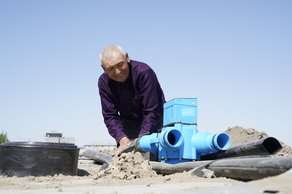 “我手下有七八個人,都是這里的村民,管著1500畝地。”哈衣繞拉得意地說。棉花播種前后,他和同伴忙著安裝連接泵房和滴灌帶的一整套供水系統(tǒng),由于每一個水閘都安有傳感器,哈衣繞拉用一臺手機就能監(jiān)測灌溉水流量、控制閥門開關。
