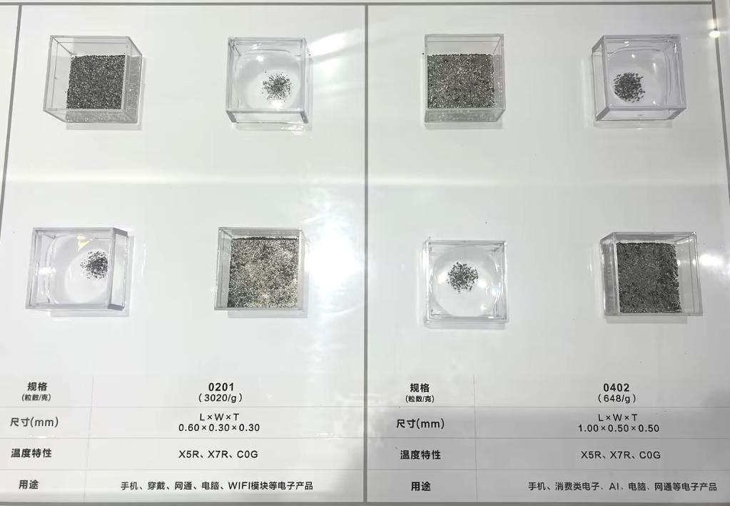 風華高科生產的部分電容產品,用于手機、消費類電子、AI等電子產品。受訪企業供圖