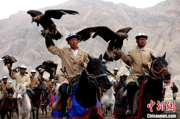 近日,2024年新疆阿合奇縣獵鷹文化旅游季拉開帷幕,馴鷹傳承人向游客展示獵鷹文化。陶拴科 攝