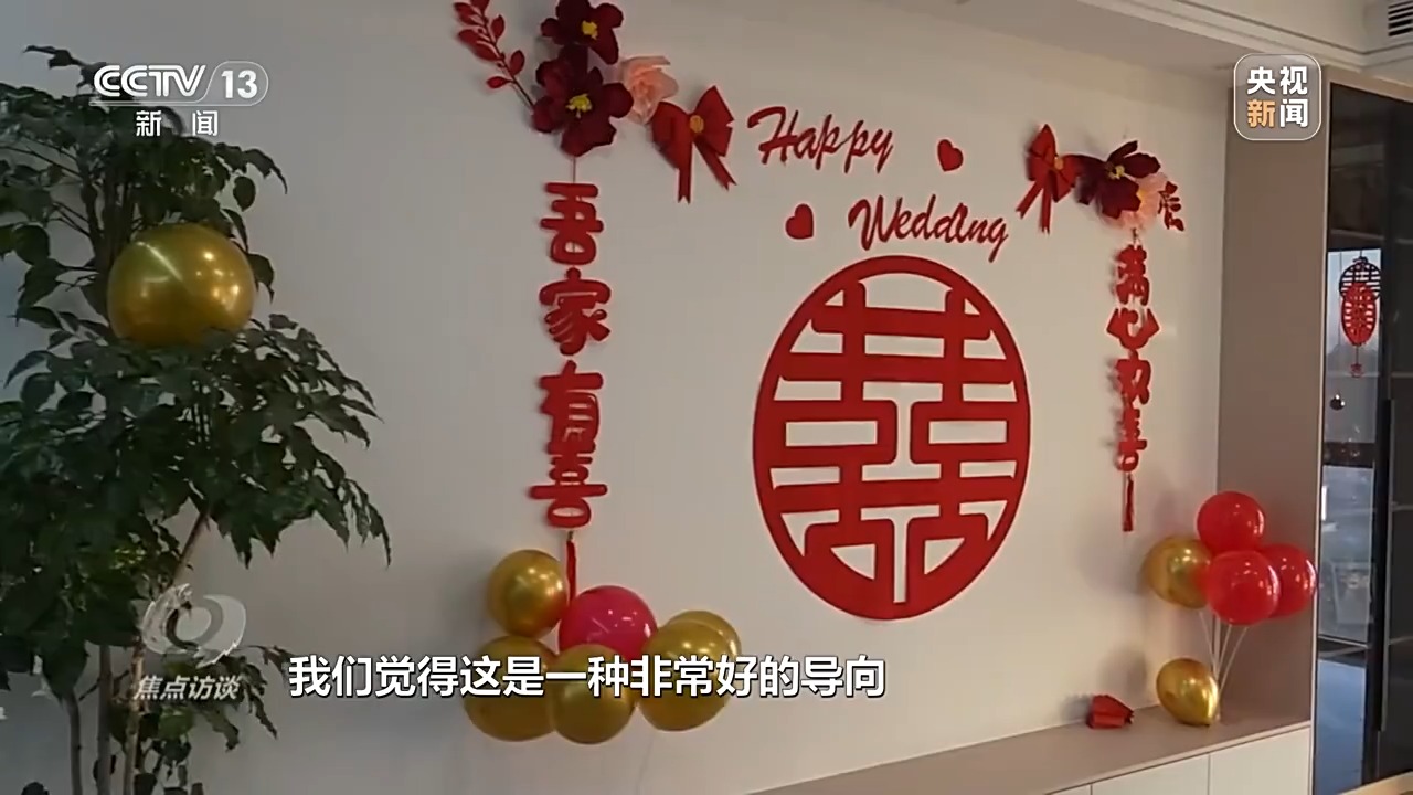 共青團中央宣傳部副部長 劉釗:我們在進行社會倡導,進行文明引導,在各地舉辦了很多集體婚禮,確實得到了基層青年比較熱烈比較積極的響應。他們用更樸素更自然更貼近自己實際需求的方式方法來籌辦自己的婚禮,也來回應一些高額彩禮給他們所帶來的壓力,我們覺得這是一種非常好的導向。