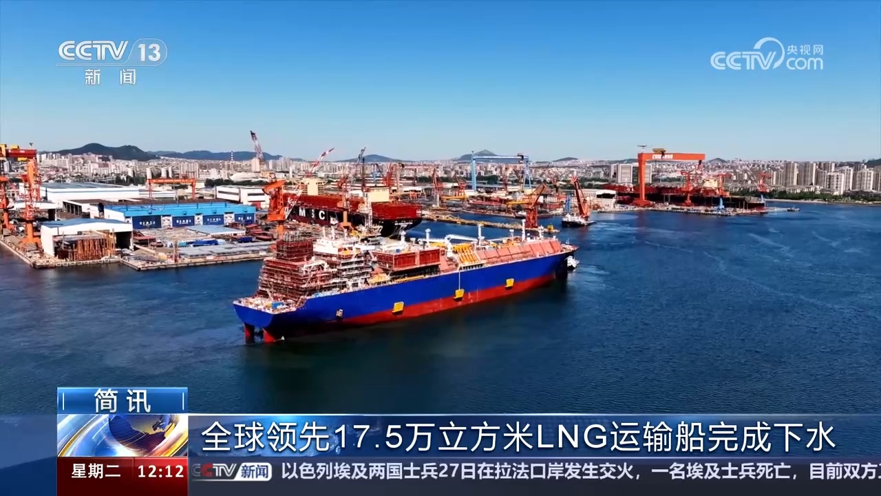 5月27日,由中國船舶大連造船研發建造的LNG液化天然氣運輸船完成下水,運輸船總長295米,貨艙總艙容17.5萬立方米,可以停靠全球絕大多數大型LNG岸站。接下來,運輸船將陸續完成水下系泊調試、貨艙貨物圍護系統施工,預計2025年8月中旬交付。