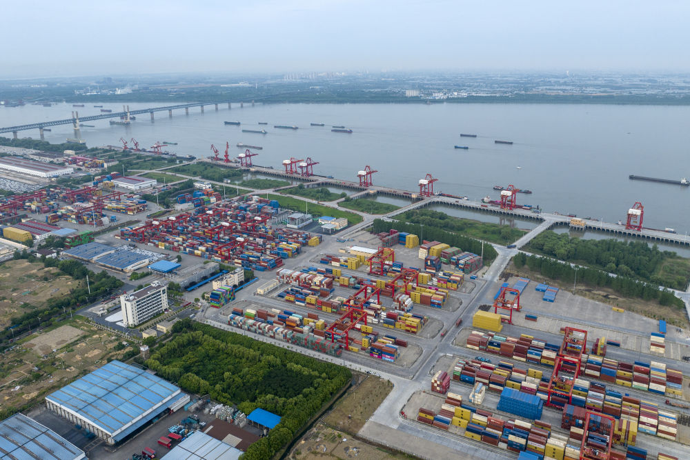 5月26日拍攝的安徽蕪湖港朱家橋港區國際集裝箱碼頭(無人機照片)。 新華社發(肖本祥 攝)