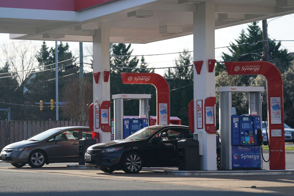 3月12日,車輛停在美國弗吉尼亞州維也納的一座加油站內。新華社記者劉杰攝