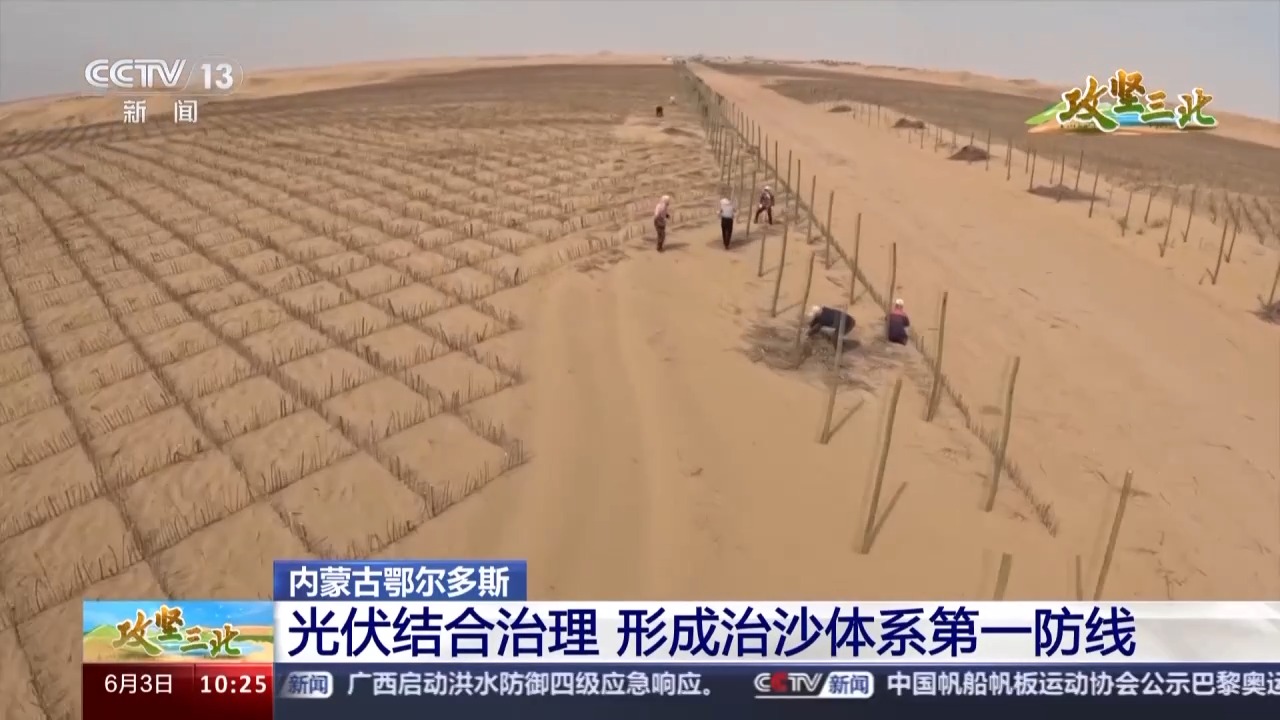 草方格+鎖邊林+光伏板 三重防線構建生態治沙新模式