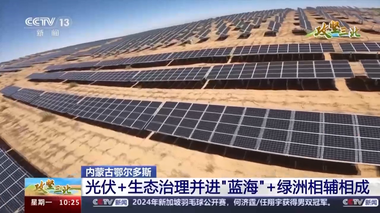 總臺記者 李欣蔓:此時此刻,我就在庫布其沙漠的西側腹地。拿我現在所在的杭錦旗朔方新能源大基地來說,這里正在探索建設的就是當下最新的光伏治沙模式。說到光伏發電,我們已經很熟悉了,那光伏治沙怎么治?今天我們就在現場找一下答案。