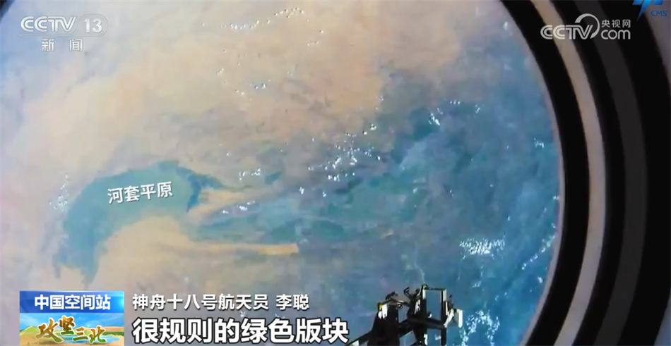 看完黃河沿線各省市區隨著“三北”工程建設而發生的變化,不知道您是否好奇,如果我們再把視角拉高,在太空俯瞰“三北”大地,又是怎樣的一幅景象呢?在距離地球約400公里的上空,神舟十八號航天員乘組的三名航天員正在中國空間站執行任務,他們也拍攝下了一些“三北”地區的畫面,我們一起去看看。
