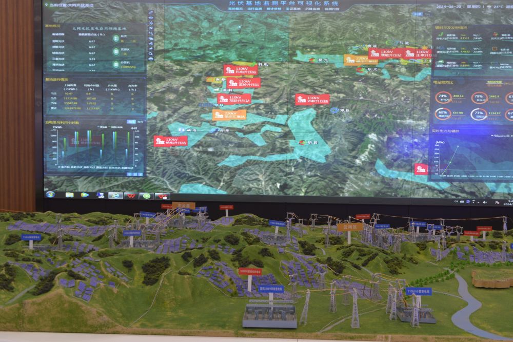 5月29日,記者拍攝的大同光伏發電監測服務中心的可視化系統。(新華社記者劉力航 攝)