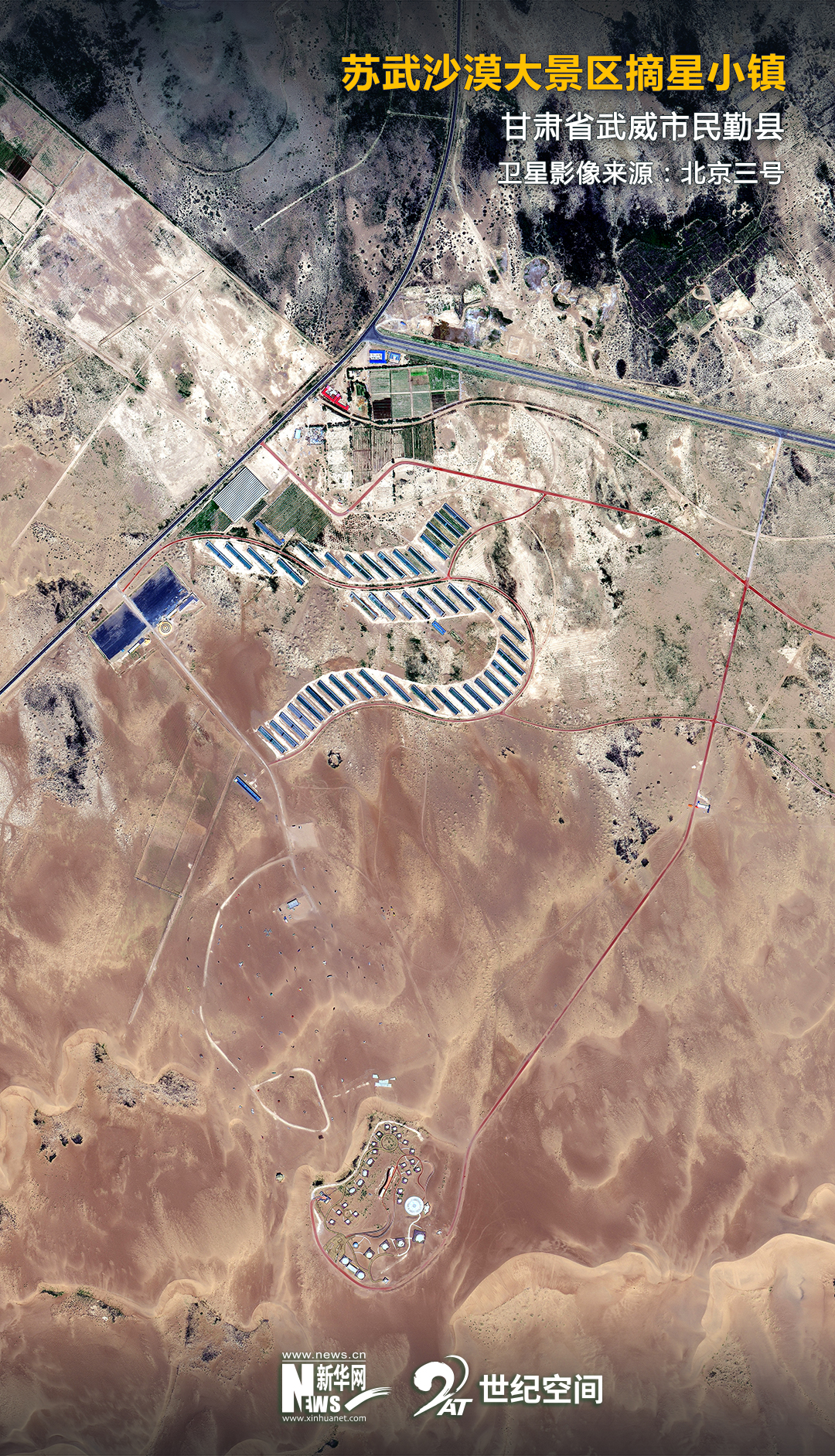 從一望無際的光伏藍海,到星羅棋布白色星球建筑,一條與沙共處的生態保護和經濟效益雙贏之路正在大漠上徐徐展開。