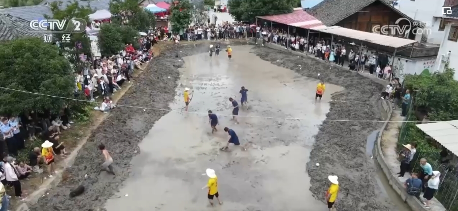 在都勻市小圍寨街道大河村,賽龍舟比賽在此舉行。由5個社區和17個村組成的14支參賽隊伍,在300多米的河道上展開激烈角逐。隨著一聲令下,選手們用足力氣劃動雙槳,沖鋒競渡。