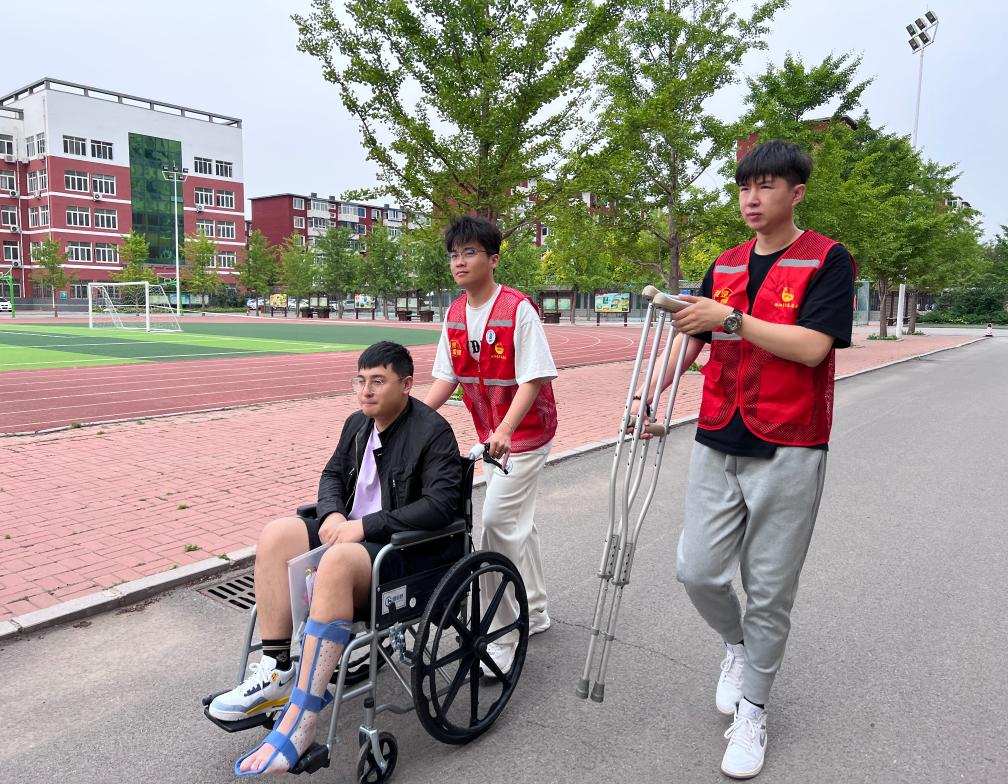 “我腳受傷了,行走不方便,你們能推我進考場嗎?”“沒問題!我們會全程陪你進出考場。”沈陽市第五十三中學考點門口,當看到一位考生坐著輪椅行動不便時,志愿者們迅速承擔起了接送任務。