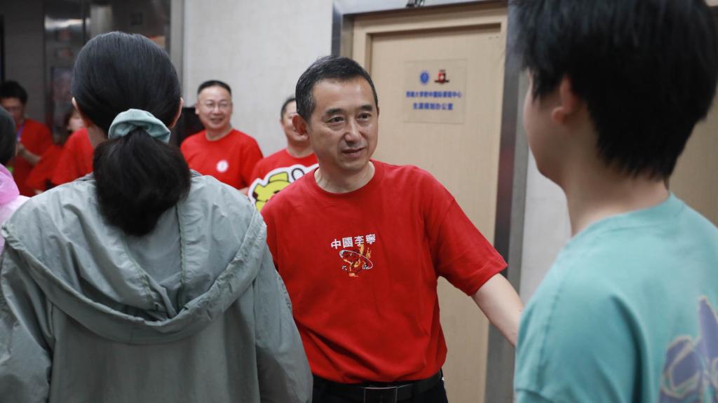 6月7日,北京一零一中學的送考老師們在校門口為考生加油鼓勁。(北京一零一中學供圖)