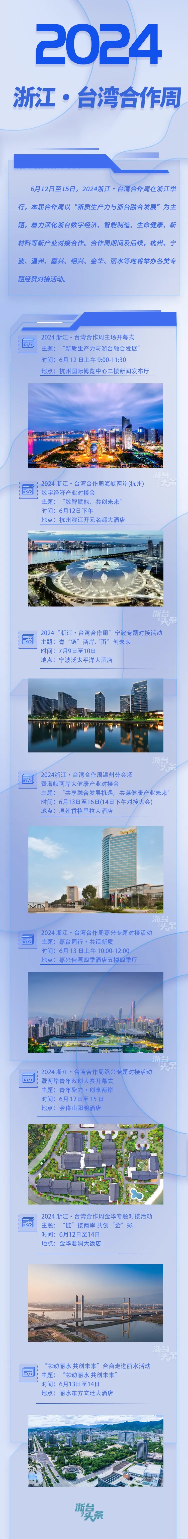 6月12日至15日,2024浙江·臺(tái)灣合作周又將如期而至,作為最具浙江辨識(shí)度的兩岸經(jīng)貿(mào)交流活動(dòng)的金名片,本屆浙江·臺(tái)灣合作周以“新質(zhì)生產(chǎn)力與浙臺(tái)融合發(fā)展”為主題。