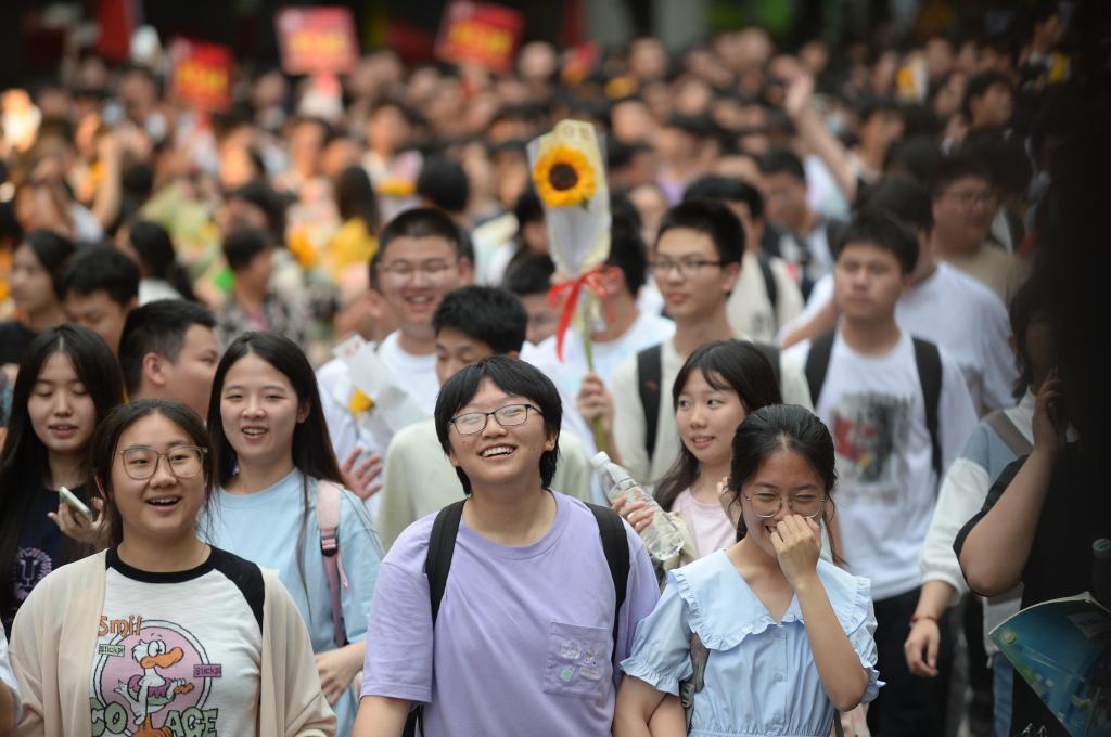 考生們從考場(chǎng)魚(yú)貫而出,家長(zhǎng)們送上鮮花和擁抱,大家合影留念,記錄下青春歲月里的難忘時(shí)刻……