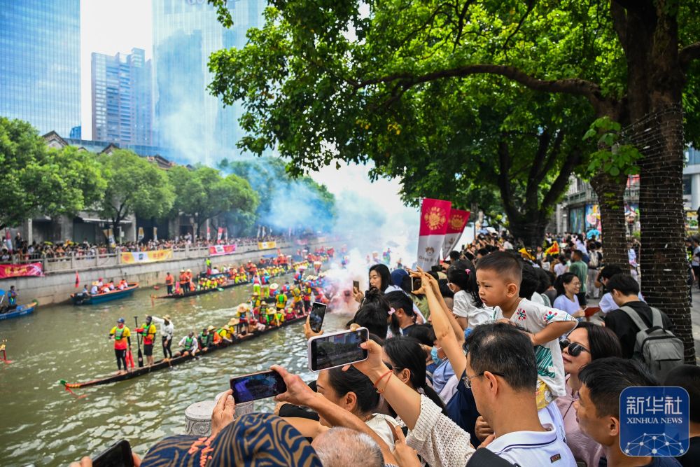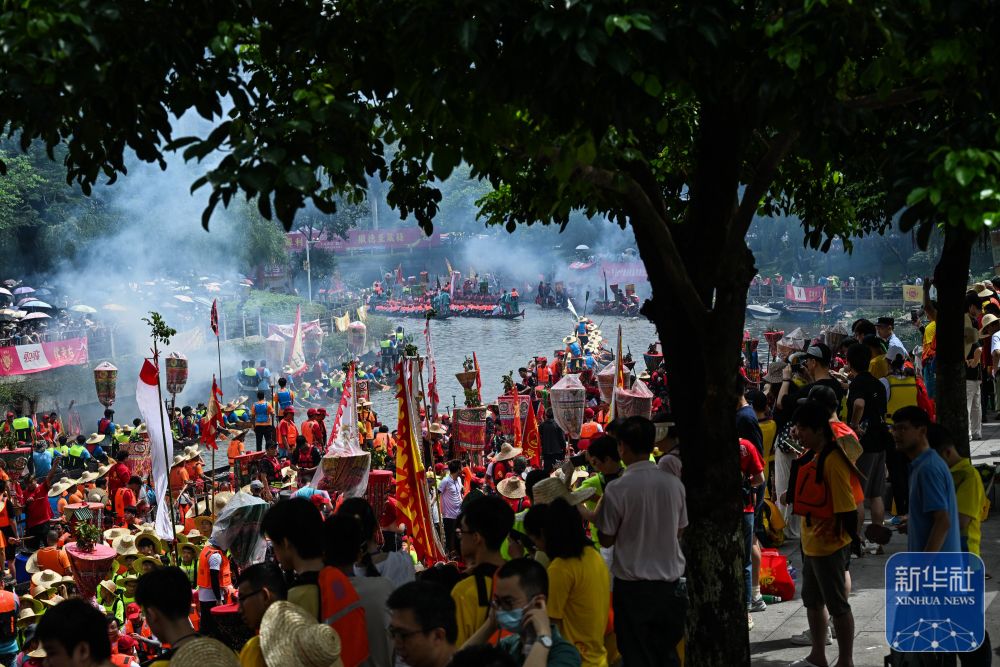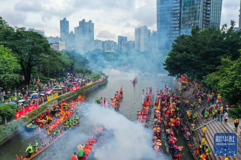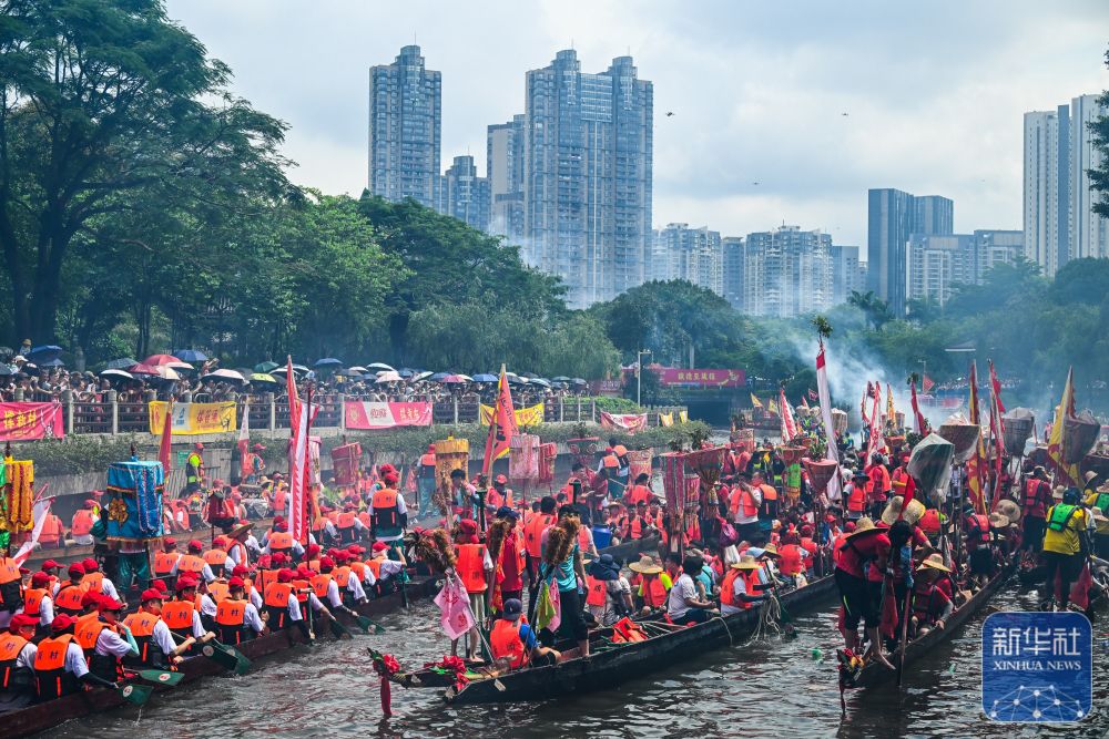 6月10日,國內外游客匯聚在獵德觀賞“龍船景”?!褒埓啊笔菑V府地區水鄉在端午期間舉辦的一種民俗活動。