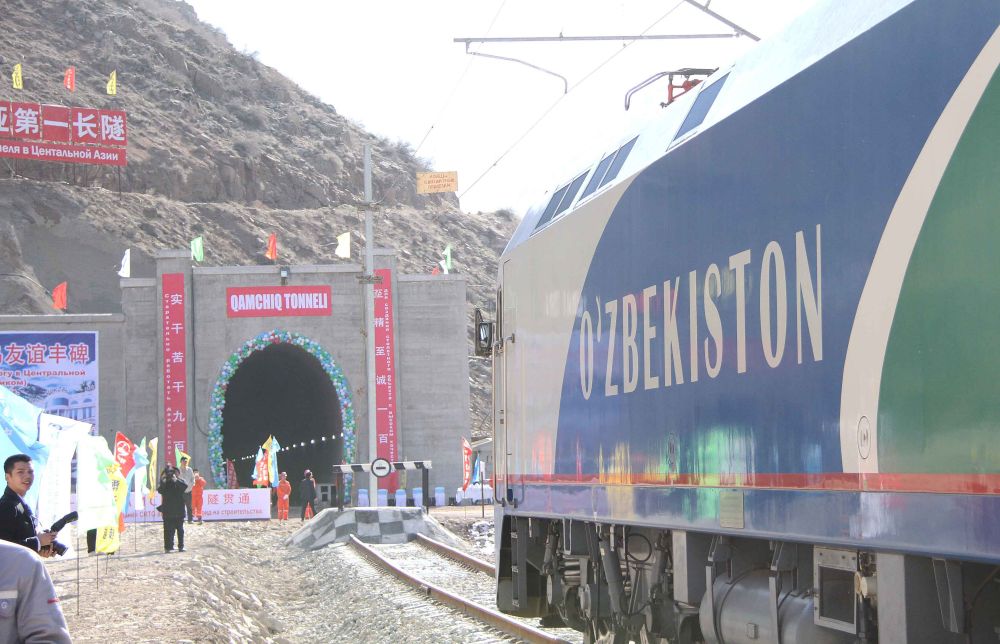 2016年2月27日,一列專(zhuān)列停在烏茲別克斯坦安格連至琶布鐵路甘姆奇克隧道進(jìn)口。這一隧道長(zhǎng)19.26公里,為中亞第一長(zhǎng)隧、烏茲別克斯坦一號(hào)工程,也是“絲綢之路”經(jīng)濟(jì)帶鐵路網(wǎng)中吉烏鐵路的重要一環(huán)。新華社記者沙達(dá)提攝