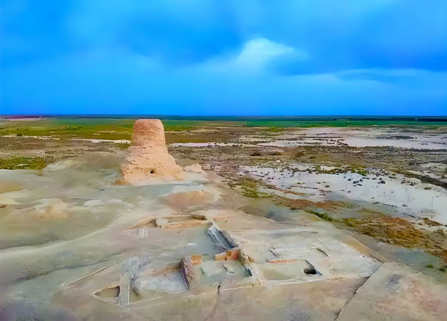 莫爾寺遺址發掘現場:遠處為圓形塔,近處為大佛殿和僧舍建筑基址。