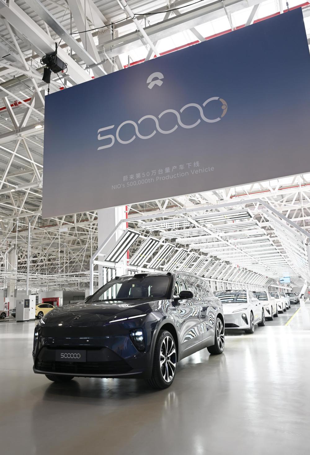 在安徽省合肥市新橋智能電動汽車產(chǎn)業(yè)園蔚來合肥第二工廠,蔚來第50萬臺量產(chǎn)車下線(2024年5月9日攝)。