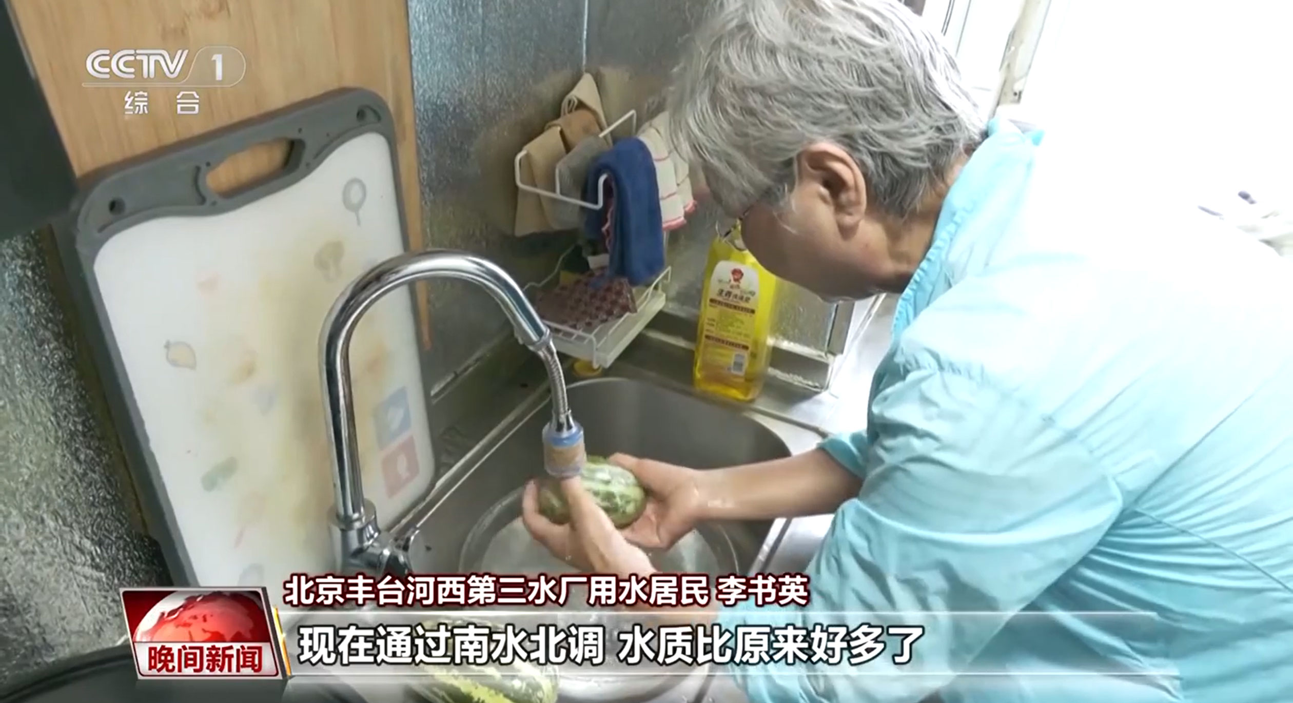 北京豐臺河西第三水廠用水居民 李書英:我們原來(燒)水的時候,用那水壺(燒)開了(水)以后還得沉淀,沉淀十幾分鐘以后再灌暖壺,但是暖壺里水堿也特別多,現在通過南水北調,水質比原來好多了,水堿比原來大大減少。