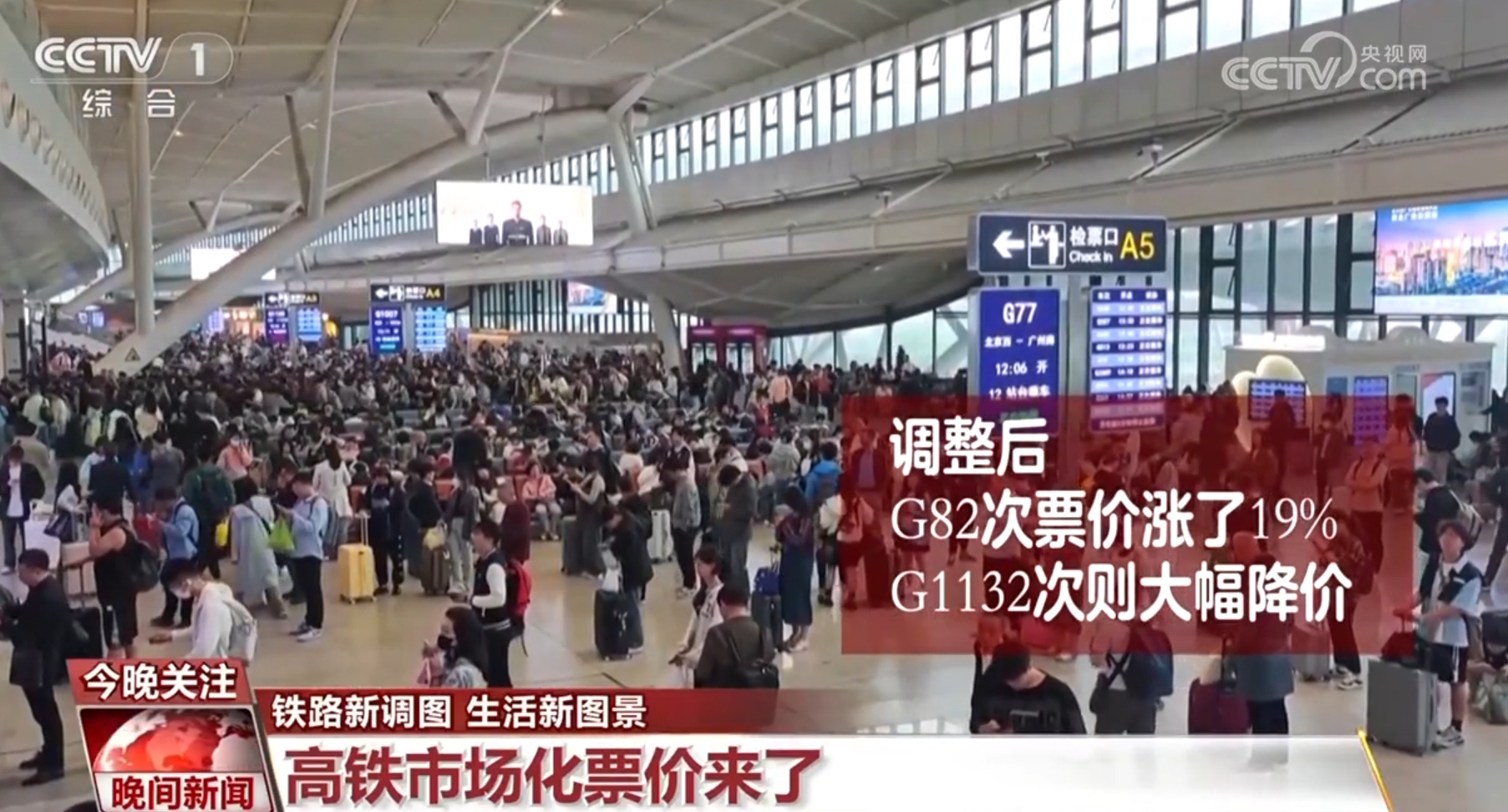 列車執行票價以鐵路12306和相關車站公告的公布票價為上限,綜合考慮區域、淡旺季、時段等因素,實行不同幅度的折扣,最低5.5折。以廣州南至武漢的G82次和G1132次為例,后者比前者運行時間長一小時,但目前兩者票價相同。而6月15日調整后,G82次票價漲了19%,而G1132次則大幅降價。