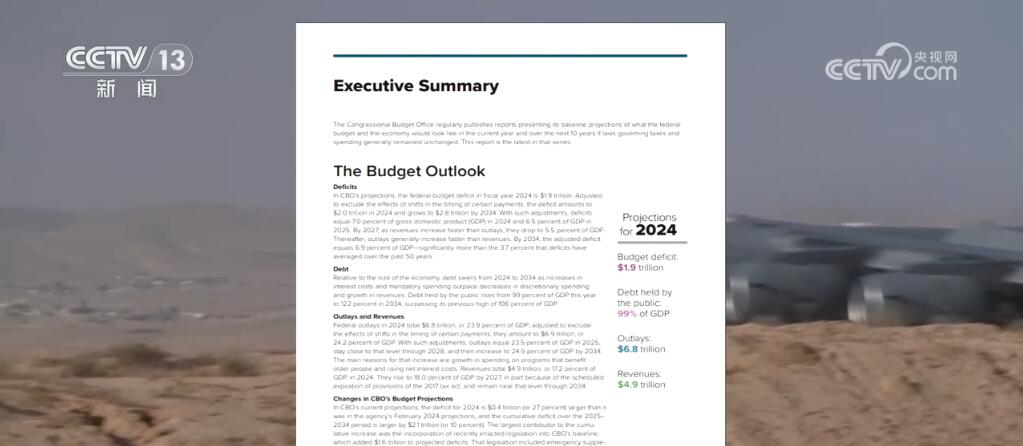 美國國會預算辦公室18日發布報告稱,在2024財年,聯邦政府預算赤字預計將達到1.9萬億美元。