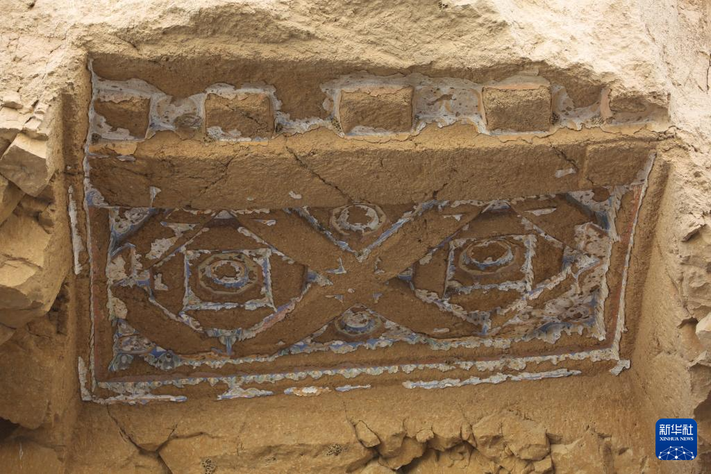 這是6月15日在阿富汗巴米揚省弗拉迪石窟遺址區(qū)拍攝的一處石窟頂部結構與殘存壁畫。新華社發(fā)(塞夫拉赫曼·薩菲攝)