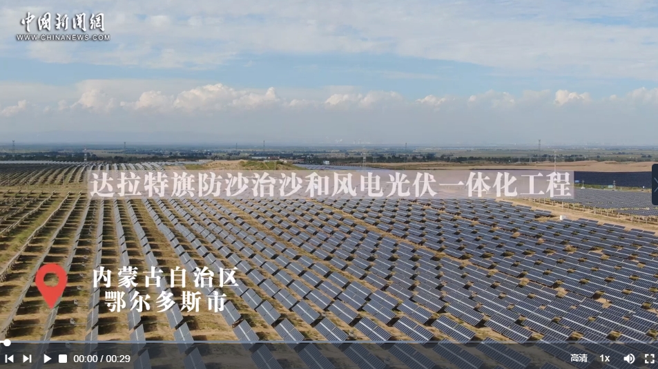 6月28日,“鑄牢共同體 中華一家親”主題宣傳活動采訪團來到內蒙古自治區鄂爾多斯市達拉特旗防沙治沙和風電光伏一體化工程。工程主要布局在庫布其沙漠和南部干旱硬梁區,庫布其沙漠工程規劃總長133公里、裝機規模2700萬千瓦的“光伏長城”。達拉特旗光伏發電應用領跑基地位于“光伏長城”中部,基地采取“光伏+生態治理+有機農林+沙漠旅游”模式,種植紫穗槐、黃芩、黃芪等經濟作物。