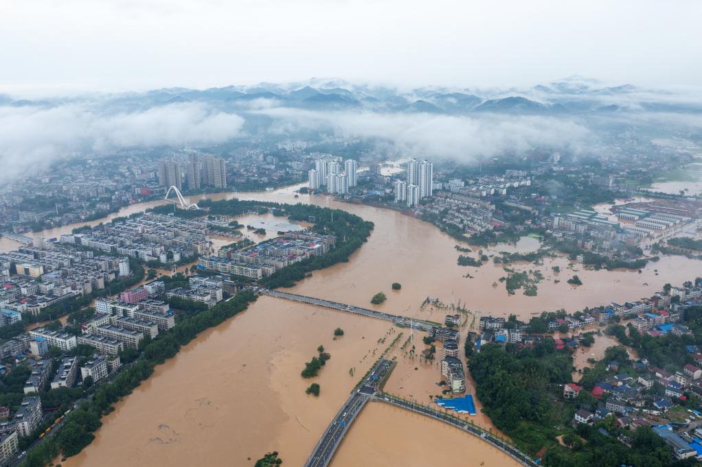 據(jù)了解,自6月18日以來,平江縣降雨量高達759.6毫米,為當?shù)刈?961年有氣象記錄以來同期最高值。截至1日19時許,全縣共計190座水庫溢洪。在過去的48小時內(nèi),汨羅江平江站水位漲幅高達9.5米。平江縣城兩段堤防共計7000米出現(xiàn)洪水漫溢,短時強降雨后縣城內(nèi)澇,局地積水深達3米。平江多個鄉(xiāng)鎮(zhèn)受淹比較嚴重,多地出現(xiàn)山體滑坡、道路中斷、房屋垮塌、洪水漫溢等災情。