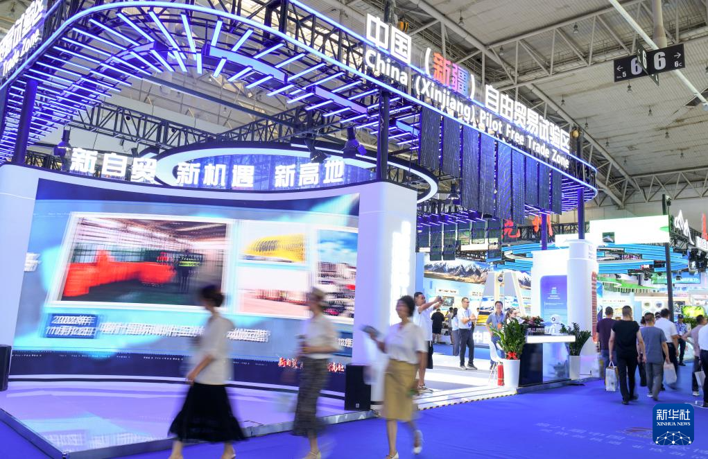2024年6月27日,在第八屆中國—亞歐博覽會上,觀眾在中國(新疆)自由貿易試驗區展臺參觀。新華社記者 王菲 攝