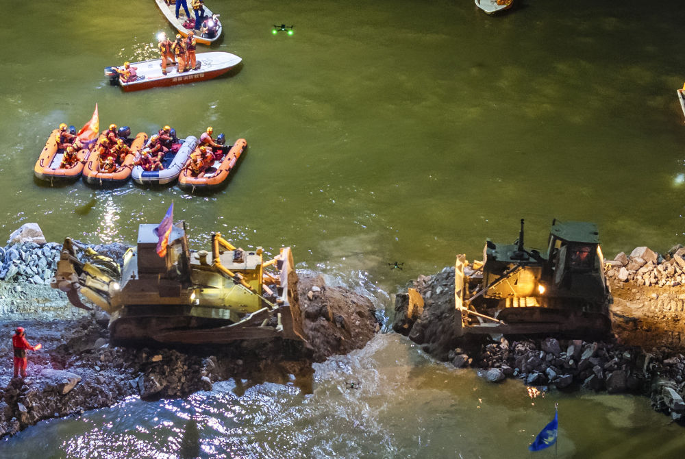 決口合龍時,湖面的風很大。劉子翔屏住呼吸,緊盯著無人機遙控器上的監控畫面,大拇指精準調節操作桿。回憶起那個激動人心的時刻,劉子翔說:“雖然有點想拿手機拍攝合龍瞬間,但在那個關鍵時刻,年輕人不能‘掉鏈子’。”