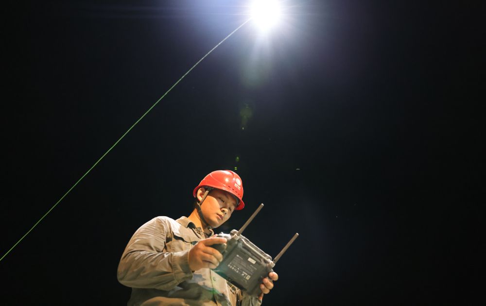 在堵口作業現場,劉子翔負責操作系留式無人機,為施工人員提供夜間照明。他時刻注意風向、風速,根據施工人員的需求,及時調整無人機的位置,確保“照得見、照得亮”。