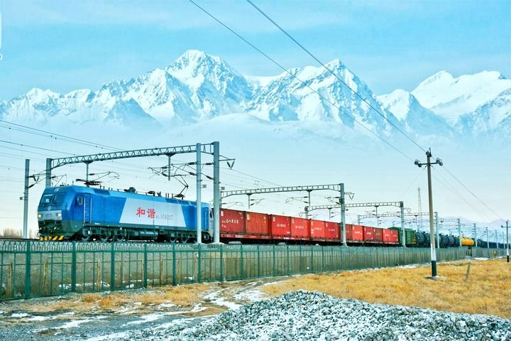 天山腳下繁忙的中歐班列(2016年11月29日攝)。新華社發(擺風亮 攝)