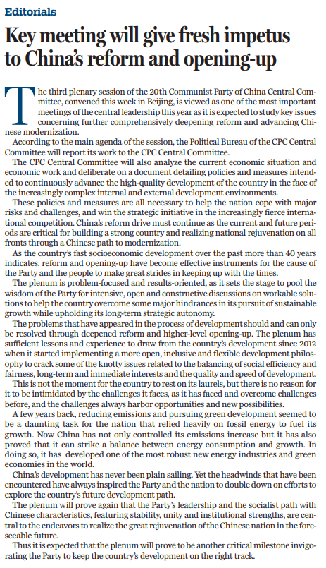 中國共產黨第二十屆中央委員會第三次全體會議本周在北京召開,將對進一步全面深化改革、 推進中國式現代化作出戰略部署。