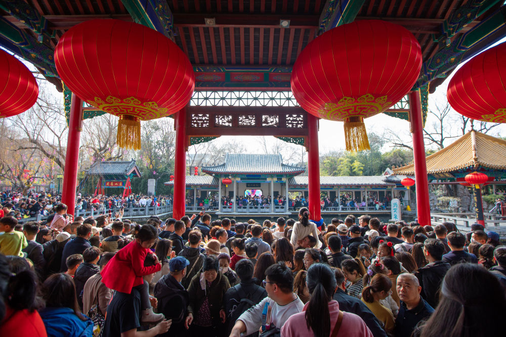2月14日,游客在山東濟南趵突泉景區游玩。春節假期,許多景區迎來客流高峰,文旅消費市場火爆。 新華社發(徐舟 攝)