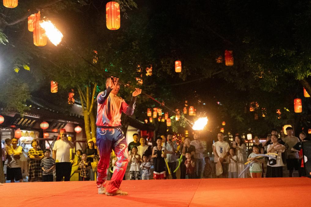 游客在開封清明上河園景區(qū)內觀看民俗表演(6月27日攝)。新華社發(fā)(受訪者供圖)