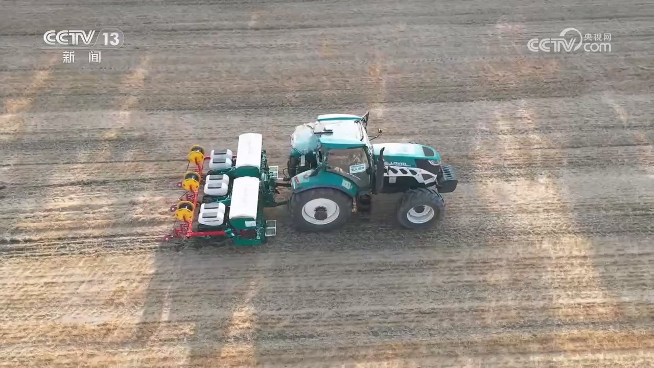 通過北斗衛星導航的輔助,這款播種機可以精準按照設定的行距和株距,一次性完成播種、施肥、鋪設滴灌帶等多個工序的作業,大大提高了作業效率。用這種高性能播種機可以做到精準密植,將播種量從以前每畝4200株提高到6000株。