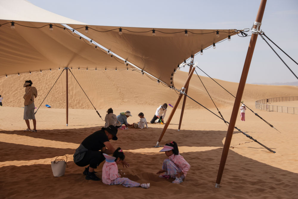 7月26日,游客在寧夏中衛市沙坡頭景區游玩。新華社記者 呂帥 攝