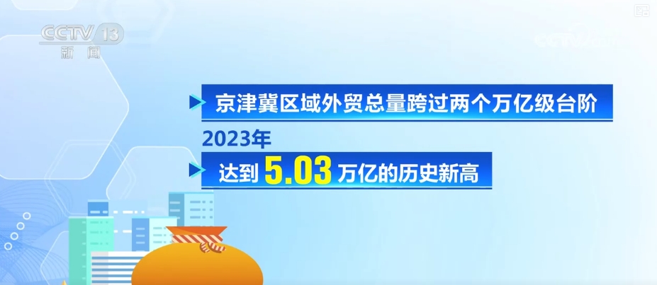 京津冀區(qū)域外貿(mào)總量跨過兩個(gè)萬億級臺階,2023年達(dá)到5.03萬億元的歷史新高。