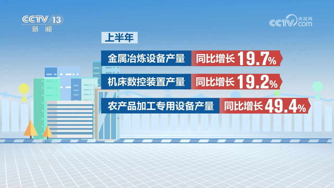 今年以來,在各方共同努力下,推動大規(guī)模設(shè)備更新和消費(fèi)品以舊換新工作取得良好開局。一方面,大規(guī)模設(shè)備更新帶動了相關(guān)設(shè)備生產(chǎn)較快增長,惠及多個重點(diǎn)行業(yè)。上半年,規(guī)模以上金屬冶煉設(shè)備、機(jī)床數(shù)控裝置、農(nóng)產(chǎn)品加工專用設(shè)備產(chǎn)量同比分別增長19.7%、19.2%、49.4%。另一方面,消費(fèi)品以舊換新政策引導(dǎo)居民消費(fèi)潛力有序釋放,對拉動汽車、家電等耐用消費(fèi)品銷量增長起到了一定的“催化”作用。上半年,限額以上單位,也就是年主營業(yè)務(wù)收入達(dá)到500萬元及以上的零售企業(yè),家用電器和音像器材類商品零售額同比增長3.1%,比上年同期加快2.1個百分點(diǎn)。
